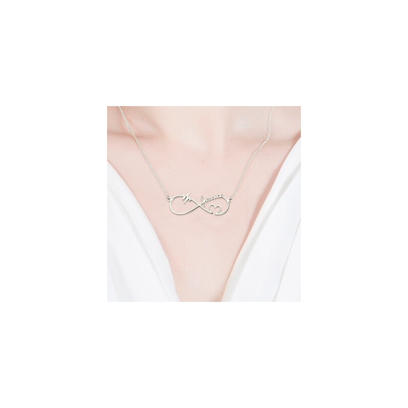 MODNI HIT! Srebrna verižica Infinity = Neskončnost - imena + srček + utrip srca.