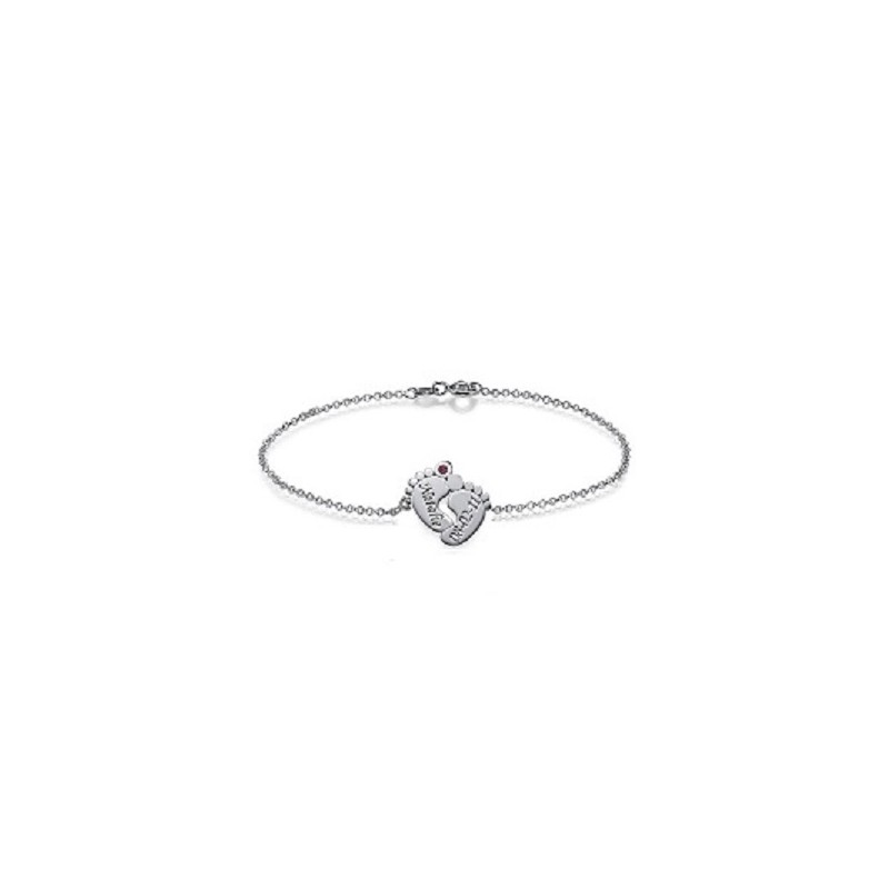 Srebrna zapestnica z obeskom nogica - vpisanim imenom, datumom po želji in s kristalčkom.