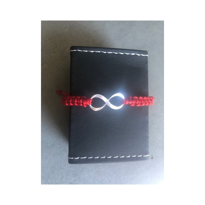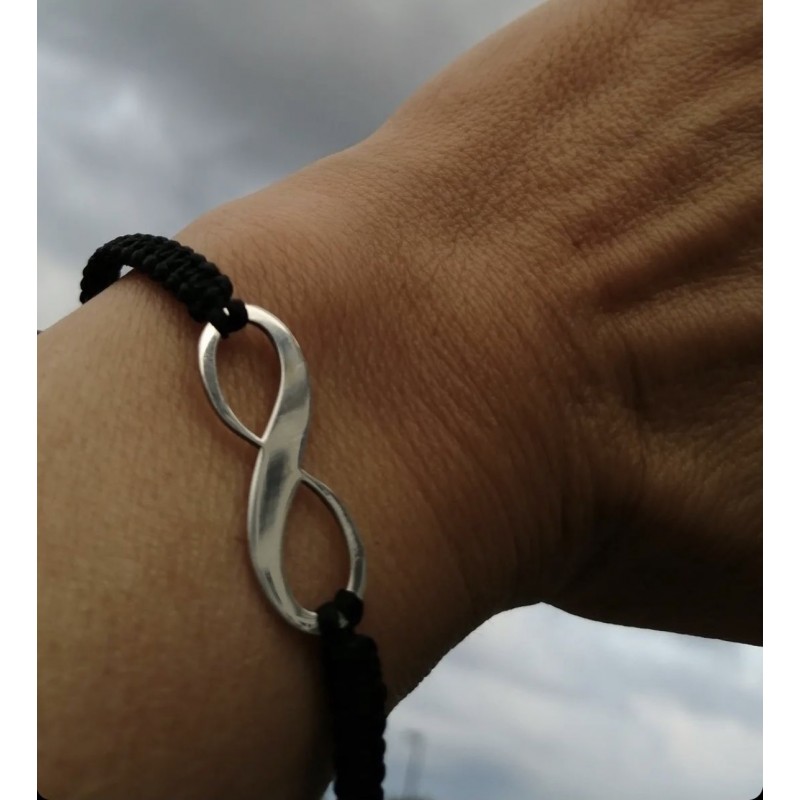 Zapestnica imitacija usnja + srebrn obesek neskončno.
