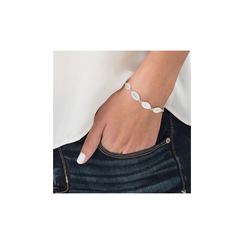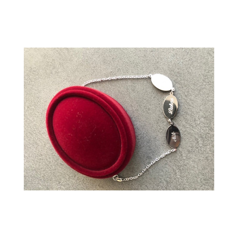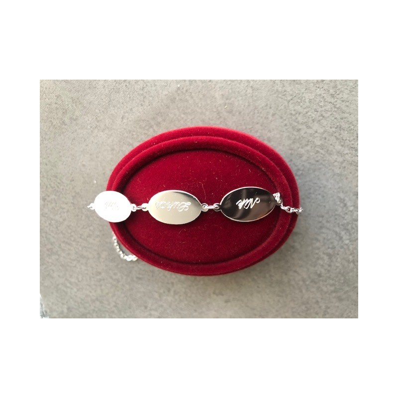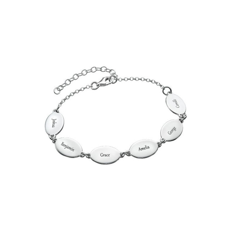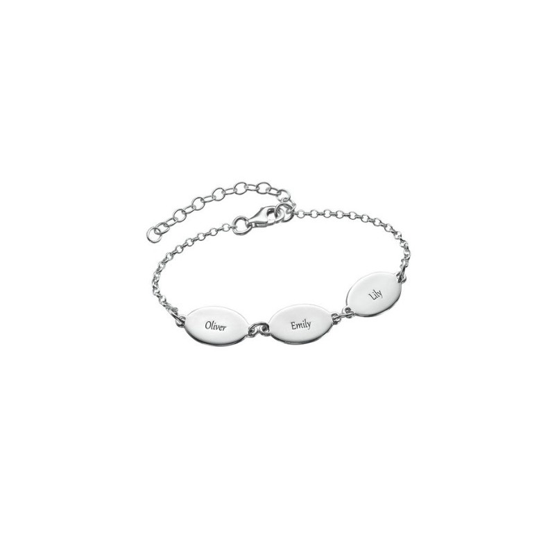 Srebrna zapestnica "Oval 3-6" z imeni.