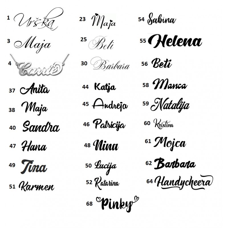 Ime, ki ga želiš, stil pisave in dolžino verižice, dopiši v opombe pri naročilu (kot kaže slika spodaj) ali pa nam pošlji svoje želje na mail: info@nali.si.