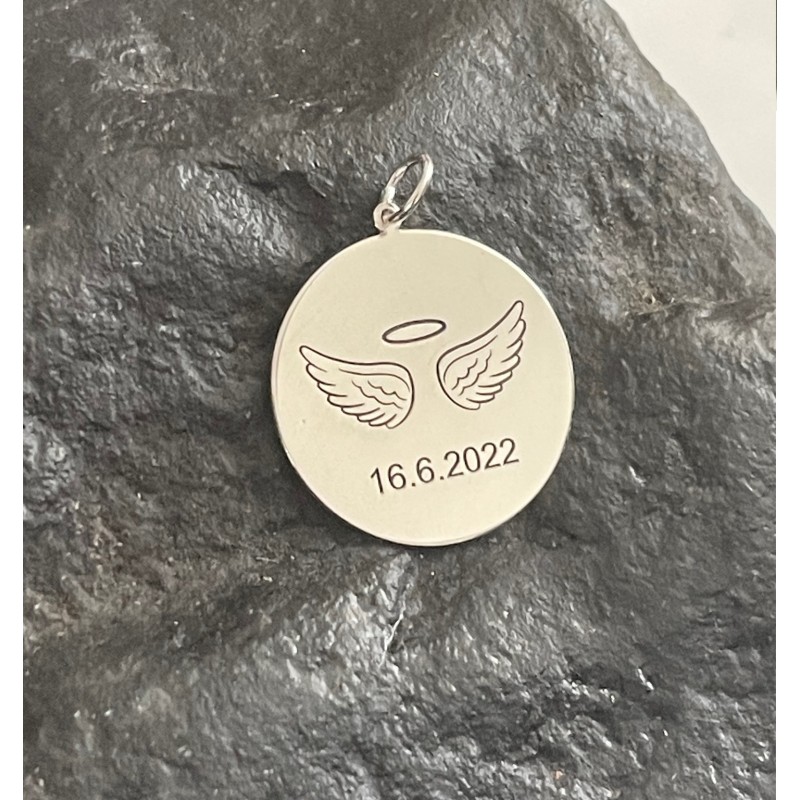Srebrna verižica Angel z vgraviranim imenom, datumom...