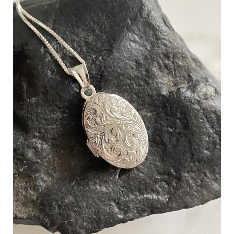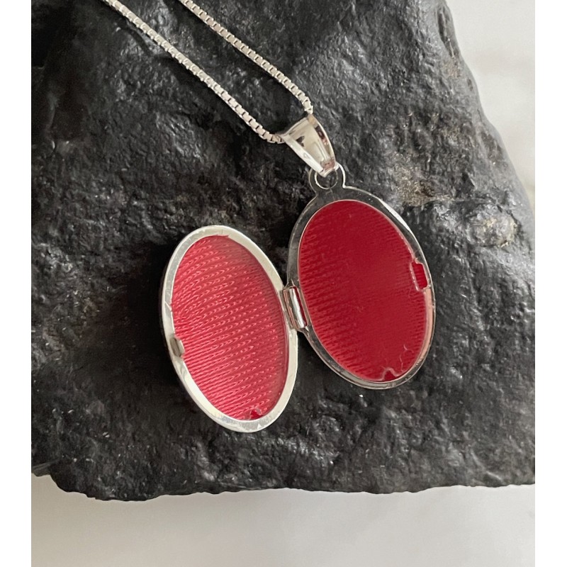 Srebrna verižica z obeskom medaljon oval, v katerega lahko shranite slike svojih najdražjih.