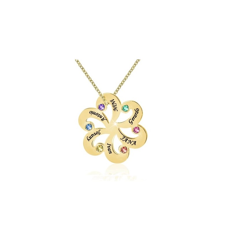 Srebrna verižica s pozlato in s kristalčki ter vgraviranimi imeni.